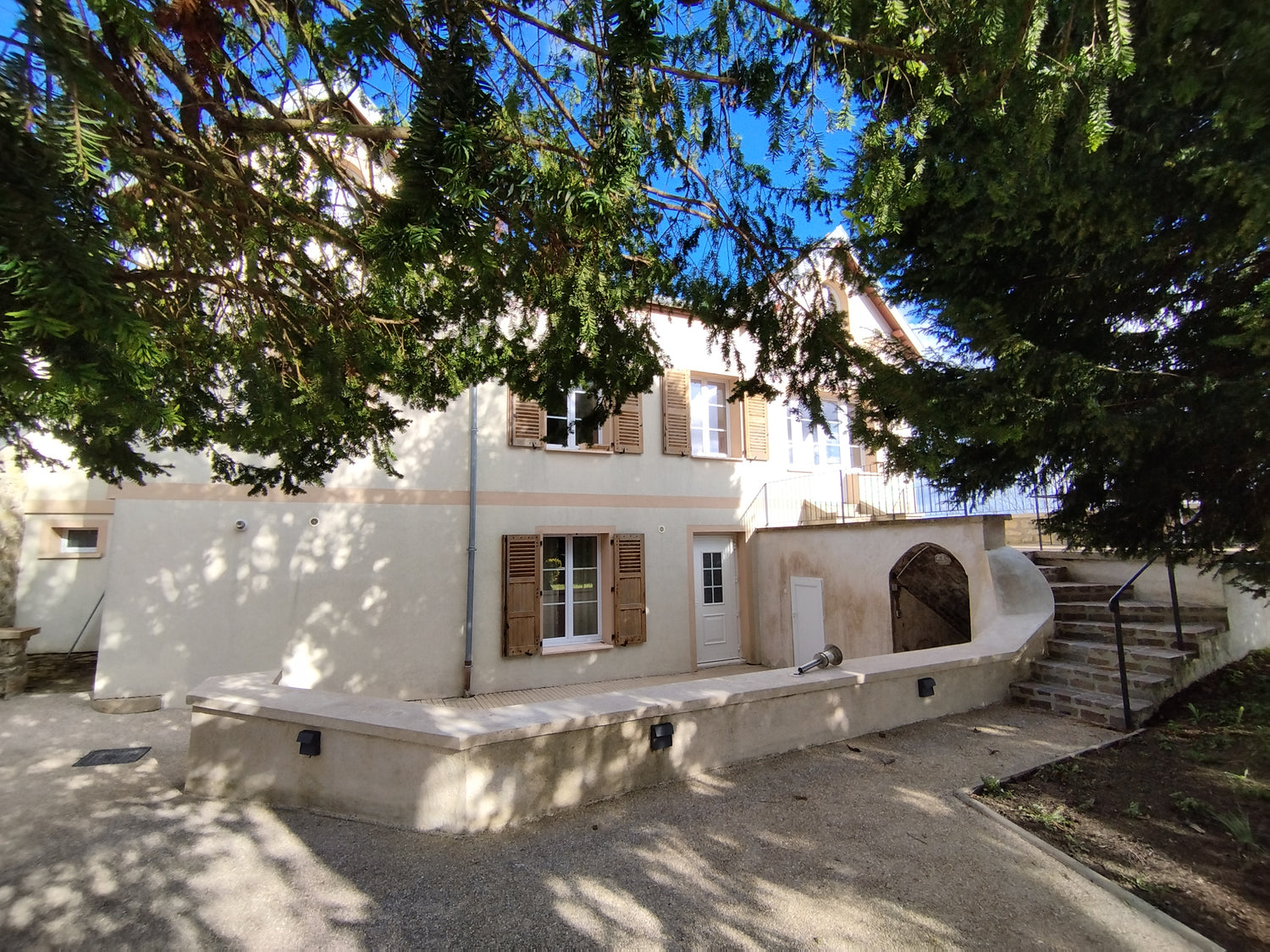 Qualifiée depuis toujours de petite, par opposition à la maison principale qu’elle gardait, aujourd’hui aménagée en maison d’hôte, elle n’en abrite pas moins de 5 chambres indépendantes, et une grande partie commune aménagée en cuisine ouverte et petit salon, autour d’un escalier central éclairé par un puits de lumière. Au rez-de-chaussée, une grande cour, ouverte sur le jardin, et au premier étage une terrasse dominant la vallée de la Seine augmentent encore l’espace à vivre.